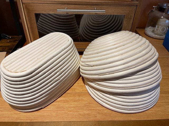 These cozy little baskets cradle the dough during its final rest, helping it keep its shape and giving it that lovely spiral pattern on top. My bannetons are dusted with flour and love from every bake.