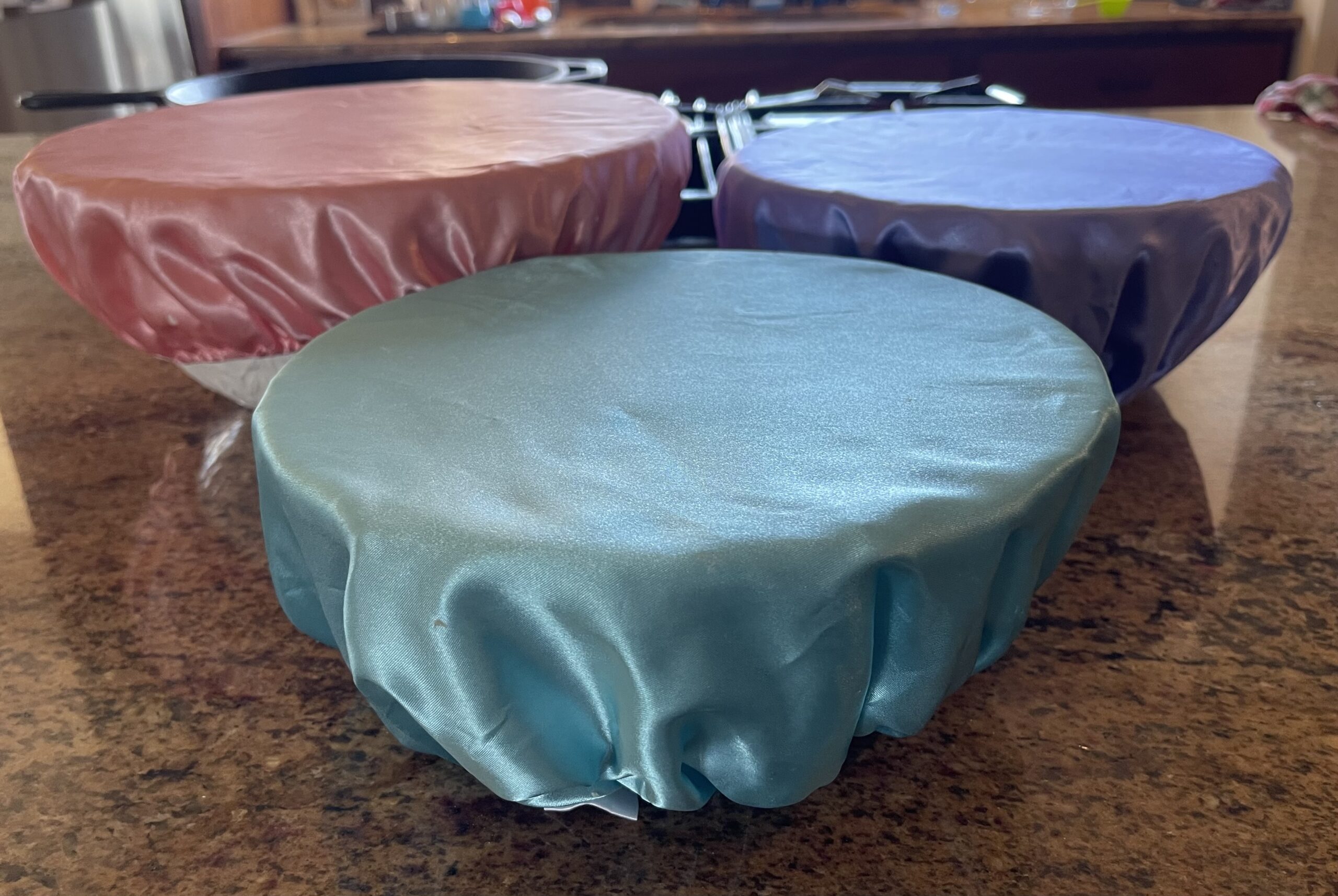 A fun secret: I use shower caps with vinyl lining to cover my bowls during proofing! They fit snugly, are reusable, and keep the dough perfectly cozy as it rises—like a soft blanket for bread. Plus, they’re inexpensive, colorful and fun!